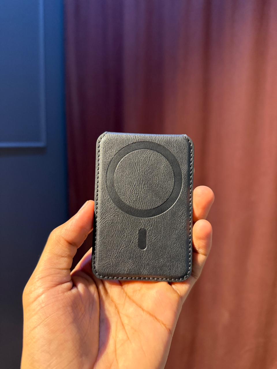 he Satechi Magnetic Wallet Stand perfectly combines style, functionality, and sustainability. It's a powerful add-on accessory and the perfect companion for your everyday needs. Designed with MagSafe-compatible technology, this sleek vegan-leather wallet effortlessly and securely attaches to your iPhone in a snap connection so you can conveniently carry your cards, ID, or even cash wherever you go. The versatile magnetic wallet is also designed to double as a durable and sturdy stand for your iPhone, giving you a hands-free option to browse the web, stream videos, or hop on a FaceTime call in both portrait and landscape modes.
